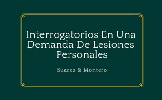 ¿Tiene preguntas sobre interrogatorios? ¿Necesita ayuda con un reclamo o demanda de seguro de accidente automovilístico? Deje que los abogados de lesiones personales de Suarez & Montero revisen las circunstancias de su caso y analicen sus opciones legales. Nuestros abogados están listos para proporcionar una representación legal probada en la prosecución de su reclamo y estar listo para proteger sus derechos. Contáctenos hoy para una consulta gratis!