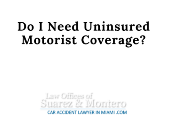 Accidents create confusing and chaotic scenes. Knowing what to do after an accident can  help protect your rights, especially against uninsured or underinsured drivers. Statistics  show that about 25% of drivers in Florida are under insured or uninsured. Nationally, one  out of 8 drivers are uninsured. The best way to protect yourself against this is by  purchasing uninsured motorist coverage. This type of insurance works almost like bodily  injury coverage. Uninsured motorist coverage allows the policyholder to be covered  against any injury or damages resulting from an accident caused by a negligent driver  whose vehicle is not insured. In Florida, this is not a requirement. However, we can’t  recommend this coverage enough. We often tell our clients that this is one of the most  important coverages you can have. This is because many drivers in Florida are either  under insured or not insured at all. When a driver is uninsured, they don’t have a current  insurance policy. When a driver is under insured it means that they have not paid enough  to obtain a policy that can cover all your damages. In this blog post, we will discuss uninsured motorist coverage and explain whether you should obtain uninsured motorist  coverage for your policy.