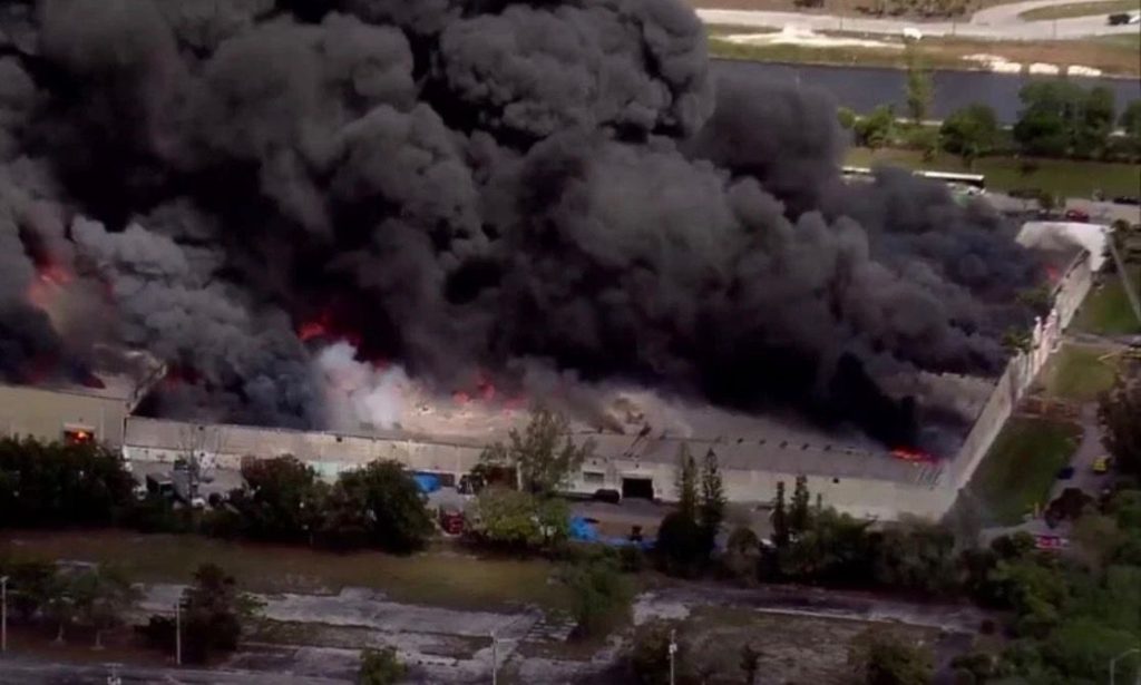 Massive fire at northwest Miami-Dade warehouse continues to burn