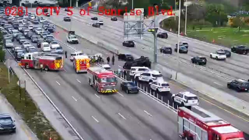 A serious crash caused a large traffic backup on I-95 Sunday. The accident involving multiple vehicles appeared to have occurred in the southbound express lanes to the south of Sunrise Boulevard just after 12 p.m. One of the vehicles could be seen on its roof.