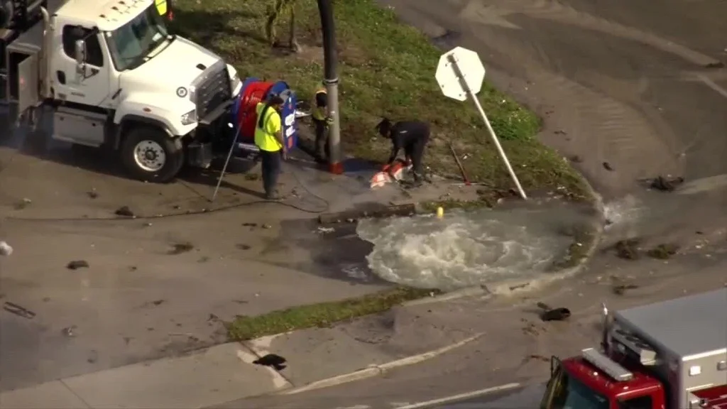 Back at the scene, police said, the impact caused the electrical pole to fall across the roadway, as well as flooding along the road, including at a nearby shopping plaza on Pines Boulevard, due to the fire hydrant being hit.