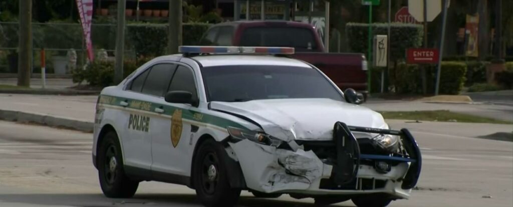According to CBS Miami, the crash occurred around 10:30 a.m., and both officers were taken to the hospital as a precaution.
