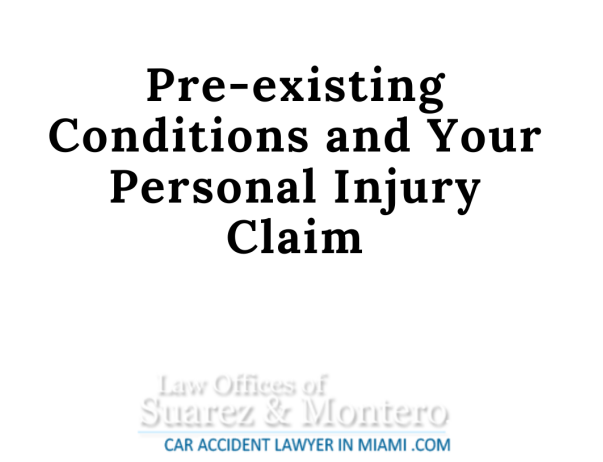Unresolved preexisting conditions: The burden is on you, the claimant, to prove that the other party is both responsible for the accident and that the injuries about which you complain were caused by the accident. Failure to establish causation is fatal to your claim. The insurance company will have physicians at its disposal to review pre- and post accident medical records to determine whether evidence exists to defeat your contention that the accident was the cause of your injuries.